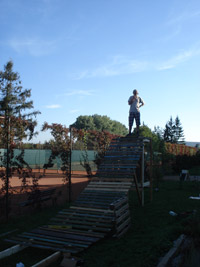 Je to tak, s klukama jsme postavili rozjezd ze dřeva. Konstrukce je vysoká 2,5 m, bang je s rádiusem...