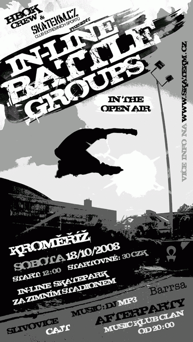 Žiju- už vím jak žiwot chutná.. přežíwám (CO VÍC SI PŘÁT:)- zatím jezdím a tak po různu.. no ale hlavně teďka už to bylo 3.místo v inline battle cerw 18.10.08 (HBOK crew - Cajt/Parazit/Kubis)! NO jako:D snažili jsme se! |